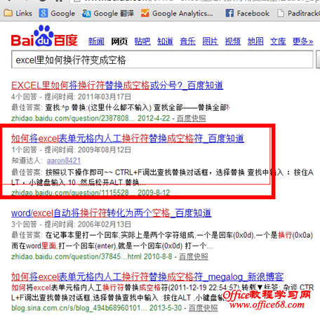 这里的换行是用alt+enter这种强制换行的,而不是自动换行。 说实话,我一开始也记得不清楚怎么解决,记不清是alt+10,还是ctrl+10. 他的源数据大概如上,要求结果是换行符没了,但之间增加一个空格。是中文空格或英文空格都没关系。 按同事的话,表格问题,先问sharpen,再问百度。可以自己去百度,或者让sharpen本人来百度。 因为我也记得不清楚,所以我去百度了。但我还是比较了解excel的,我也知道我要什么效果。所以我在百度搜索框输入