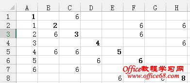 我们要求的就是斜对角1到8的和。这数据我是编的,事实数据也没有加粗。我遇到的工作内容是把很多行斜对角一排排求和。还好我想出方法了,不然我一个个斜看,眼睛都花了