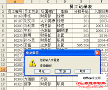 下面的数据在效性公式不允许用户在A3:A17范围中输入个重复输入项: =COUNTIF($A$3:$A$17,A3)=1 该公式假设,所选择的范围的左上单元格是A3。请注意,COUNTIF函数的第一个参数是绝对引用,第二个参数是相对引用,在有效性范围中的每个单元格它都要进行调整。 实例 在某企业的员工记录表中,每个员工的编号是唯一,不能重复...
