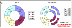 在excel2003中,圆环图与饼图类似,也用来描述构成比例的信息。但是它可以有多个数据系列。圆环图由一个或多个同心的圆环组成,每个圆环表示一个数据系列,并划分为若干个环形段,每个环形段的长度代表一个数据值在相应数据系列中所占的比例。 环形图常用来比较不同性质但相关联的多组数据的构成比例关系。例如,销售量构...
