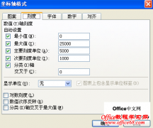 默认情况下,图表的横坐标位于绘图区的下方,纵坐标位于绘图区的左侧。通过对坐标轴刻度格式的设置,可以改变坐标轴及其交点的位置。 双击y轴,打开坐标轴格式对话框,切换到刻度选项卡,选择分类(X)轴交叉于最大值复选框,如图所示,单击确定按钮,分类x轴移动到绘图区的上边上方。 双击x轴,打开坐标轴格式对话框,切换...