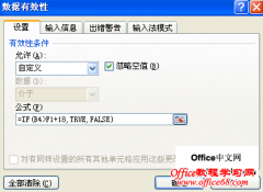 在excel2010中,您可以使用公式设置单元格的数据有效性,只有输入符合公式时,才能正确输入,否则将显示错误。具体的操作步骤如下: 1.选择一个或多个要进行验证的单元格,在数据选项卡上的数据工具组中,单击数据有效性,在数据有效性对话框中,单击设置选项卡,在允许框中,选择自定义。 2.在公式框中,输入计算结果为逻...