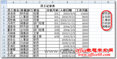 设置数据有效性不仅可以快速提高输入速度,而且还可以防止在单元格中输入无效数据。其具体操作步骤如下。 ( 1 )在员工记录表工作表中的空白区域,依次输入财务部、企划部、人事部、行政部、销售部,如图 1 所示。 图 1 在空白区域输入部门名称 ( 2 )单击所属部门列表中的任意单元格,然后在数据选项卡的数据工具选项组...