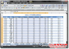 销售人员往往需要对历史销售数据作大量的统计分析,以便获得排名在前列的数据,那么如何快速展现销售业绩表中的前 3 名数据呢? 图 1 销售业绩工作表 在 Excel 2007 中,这样的工作变得格外容易,销售人员不需要插入函数、编写公式就可以达到目的。 ( 1 )在 Excel 2007 功能区的开始选项卡中,单击样式功能组中的【条件...