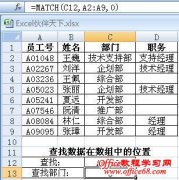 在Excel中,如果要 查找数据在数组中的位置 ,可以使用MATCH函数查找数据在数组中的位置。Excel2007可使用MATCH函数查找数据在数组中的位置。 如上图所示,在C13单元格输入公式: =MATCH(C12,A2:A9,0) 按回车键即可查找数据在数组中的位置。返回C12的数据在A2:A9数组中的位置。 Excel2007可使用MATCH函数查找数据在数组中...
