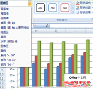 在excel2007中,有两种主要方式使用图表元素。可以使用设置格式对话框或使用功能区和浮动工具栏。 ★ 使用设置格式对话框 当选择了一个图表元素时,可以进入该元素的设置格式对话框来对元素设置格式或设置选项。每个图表元素都有各自的设置格式对话框。可以通过以下方法进入此对话框: ●右击图表元素并从快捷菜单中选择设...