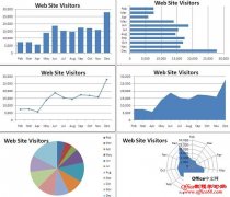 Excel用户的一个常见问题是:怎样才能知道我的数据应使用哪一种图表类型?遗憾的是,对于这个问题并没有一个现成的答案。也许最好的答案很含糊:使用以最简单的方式表现数据的图表类型。 下图所示为使用6种不同的图表类型绘制的一组相同数据。尽管6个图表都表现相同的信息(每月网站访问人数),但是它们彼此之间看起来大不...