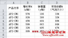 大家知道,Excel中的散点图可以显示两组数据之间的关系,而气泡图则可以显示三组数据之间的关系。气泡图中沿横坐标轴(x 轴)方向显示一组数值数据,沿纵坐标轴(y 轴)方向显示第二组数值数据,而第三组数值数据则用气泡的大小来显示。与散点图一样,其三组数据都必须为数值,不同的是气泡图中的每个数据点都对应三个数据...