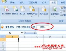 在Excel 2007中,当打开某个包含到其他工作簿链接的工作簿时,Excel可能会在功能区下方弹出一个消息栏,并给出一个安全警告提示已禁止自动更新链接,如图: 如果不更新链接,可以直接关闭消息栏,如果需要更新链接,可以单击选项按钮,在弹出的Microsoft Office 安全选项对话框中,选择启用此内容,然后单击确定按钮。 如...