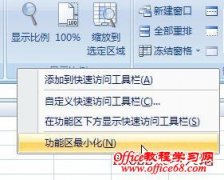 Excel 2007/2010中的功能区取代了Excel 2003中的菜单栏和工具栏,在带来方便的同时功能区也占据了更多的表格空间。我们可以用下面的方法来隐藏或取消隐藏功能区。 方法一: 双击任一选中的功能区选项卡,如当前视图选项卡已被选择,直接双击该选项卡即可隐藏功能区。再次双击该功能区选项卡将取消隐藏。 方法二: 按快捷键...