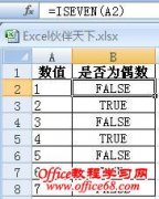 在Excel中,如果要 检验数值是否为偶数 ,可以使用ISEVEN函数检验数值是否为偶数。Excel2007可使用ISEVEN函数检验数值是否为偶数。 如上图所示,在B2单元格输入公式: =ISEVEN(A2) 按回车键即可检验数值是否为偶数,返回TRUE或FALSE。 Excel2007可使用ISEVEN函数检验数值是否为偶数。 相关说明: ISEVEN函数语法:ISEVEN(n...
