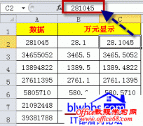 在excel处理一些比较大的数据时,为了直观,常常需要设置为万元显示。 如下图所示的A列的数据,如何设置显示为B列和C列的万元显示的效果。 excel万元显示,主要是通过设置单元格格式而实现,这样的效果只是以万元显示,而实际的值并不做任何改变,我们可以通过编辑栏看出。 比如C2单元格显示的是:28.1045,在编辑栏可以看...