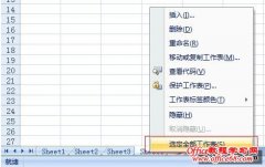 在excel里,快速选中全部工作表的方法, 右键单击工作窗口下面的工作表标签,在弹出的菜单中选择选定全部工作表命令,就是这样。 Excel选定全部工作表技巧...