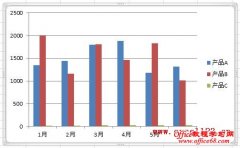 在Excel中,通常用柱形图来显示数据变化情况或反映各系列之间的对比情况。在柱形图中有时会出现各数据系列的数值相差较大的情况,如下表为某公司几种产品上半年各月的销售数量,由于产品C的单价较高,其销售量比产品A、产品B的销售量要少很多。 如果直接用柱形图来显示数据,会出现产品C系列在图表中几乎看不到的情况。 如...