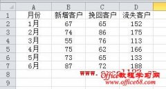 在Excel中通常用柱形图来显示各系列的对比情况,但有时需要在柱形图中显示某些系列的和与另一个系列的对比情况,例如下图为某公司上半年每月新增和流失的客户数,需要将新增的客户数与挽回的客户数合计后与流失的客户数进行对比,并用柱形图显示。 如果不允许添加辅助列...