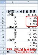 在Excel2010的数据透视表中,增强的值显示方式功能可以更加灵活地显示数据。例如下图是在Excel2007中建立的数据透视表,其中有衬衫、夹克衫和裤子三种商品,每种商品都有黑、蓝、紫三种颜色。如果要了解各种颜色的商品占总计的百分比,在Excel2007中可以轻松地实现。但有时可能还需要同时了解各种颜色的商品占该商品总量的...