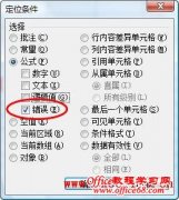 要查找Excel工作表中包含错误公式的单元格,可以用下面的一些方法: 1.定位查找 按F5键,打开定位对话框,单击定位条件按钮。在弹出的定位条件对话框中,选择公式,清除数字、文本、逻辑值等选项,仅保留错误选项,然后单击确定按钮。 公式返回错误结果的单元格都将被选中。 2.条件格式 假如包含错误的区域为A3:B20区域,...