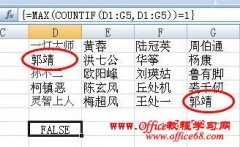 如果需要用公式来判断某个区域中是否包含重复值,可以用下面的数组公式。假如要判断的区域为D1:G5,在某个单元格中输入数组公式: =MAX(COUNTIF(D1:G5,D1:G5))=1 公式输入完毕按Ctrl+Shift+Enter结束,如果区域中有重复的内容,则公式返回FALSE,如果区域中没有重复内容,则返回TRUE。 公式说明:本例在数组公式中COUNTI...