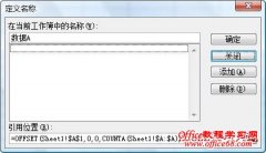 我们可以给一个单元格或区域定义一个名称,以便在公式中引用。如果区域不是固定的而是一个动态的范围,我们也可以给它定义名称,以后在公式中引用的就是一个动态区域。例如我们可以在A列中定义一个动态区域,是从A1单元格开始的动态连续区域,其包含的行数不固定,操作步骤如下: 1.单击菜单插入名称定义,打开定义名称对...