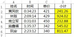 每个人一个小时的单价不一样,工作时间也不一样,有几十分钟的、有一两个小时的。 D列如何算出每个人的劳务报酬呢? 雪儿给一个我自己写的参考公式,D2单元格公式为: =(HOUR(B2)*60+MINUTE(B2)+SECOND(B2)/60)*C2/60 ,然后下拉复制,即可计算出每个人的报酬。 不知道...