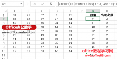 对于Excel工作薄中一个包含重复数值的区域,要将其中的数值按出现次数的多少提取到一列,通常可以用包含MODE函数的数组公式。例如数值区域为A1:E10,要将其中的数值提取到G列,如图。 在G2中输入: =MODE(IF(COUNTIF($G$1:G1,A$1:E$10)=0,A$1:E$10)) 公式输入完毕按Ctrl+Shift+Enter结束,然后拖动填充柄向下填充公式,直...