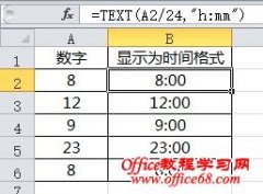 excel数字转时间格式的问题,在我们实际应用中非常常见,不妨一起看看下面这几个案例。 第一,将A列的数字转化时间格式 我们在B2单元格输入公式:=TEXT(A2/24,h:mm)。 解释:TEXT 函数可将excel数值转换为文本,并可使用户通过使用特殊格式字符串来指定显示格式。h:将小时显示为不带前导零的数字。mm:根据需要将分钟显示...
