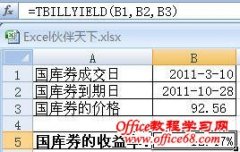 Excel使用TBILLYIELD函数计算国库券的收益率