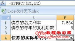在Excel中,如果要根据债券的名义利率和每年的复利期数 计算债券的实际年利率 ,可以使用EFFECT函数计算债券的实际年利率。Excel2007可使用EFFECT函数计算债券的实际年利率。 如上图所示,在B4单元格输入公式: =EFFECT(B1,B2) 按回车键即可计算债券的实际年利率。返回债券的实际年利率。 Excel2007可使用EFFECT函数计算债...