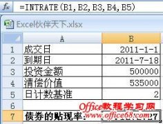 Excel使用INTRATE函数计算债券的一次性付息利率