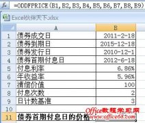 Excel用ODDLPRICE函数计算债券末期付息日的价格