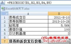 Excel使用PRICEDISC函数计算债券的折价发行价格