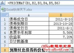 Excel使用PRICEMAT函数计算到期付息债券的价格