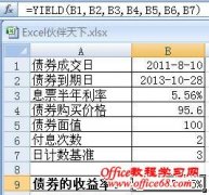 在Excel中,如果 计算债券的收益率 ,可以使用YIELD函数计算债券的收益率。Excel2007可使用YIELD函数计算债券的收益率。 如上图所示,在B9单元格输入公式: =YIELD(B1,B2,B3,B4,B5,B6,B7) 按回车键即可计算债券的收益率。返回债券的收益率。 Excel2007可使用YIELD函数计算债券的收益率。 相关说明: YIELD函数语法:YIELD(...