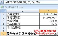 Excel使用RECEIVED函数计算债券到期的总回报金额