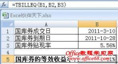 Excel使用TBILLEQ函数计算国库券的等效收益率