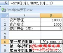 Excel使用SYD函数按年限总和法计算固定资产折旧额