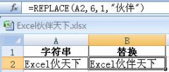 在Excel中,如果要 替换字符串中的字符 ,可以使用REPLACE函数替换字符串中的字符。Excel2007可使用REPLACE函数替换字符串中的字符。 如上图所示,在B2单元格输入公式: =REPLACE(A2,6,1,伙伴) 按回车键即可替换字符串中的字符,返回替换后的字符串。 Excel2007可使用REPLACE函数替换字符串中的字符。 相关说明: REPLACE...