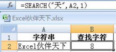 Excel使用SEARCH函数查找文本在字符串中的位置