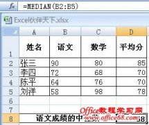 在Excel中,如果需要 计算数值的中位数 ,可以使用MEDIAN函数计算数值的中位数。Excel2007可使用MEDIAN函数计算数值的中位数。 如上图所示,在D8单元格输入公式: =MEDIAN(B2:B5) 按回车键即可计算数值的中位数。返回语文成绩的中位数。 Excel2007可使用MEDIAN函数计算数值的中位数。 相关说明: MEDIAN函数语法:MEDIAN(n...