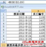 在Excel中,如果需要 统计那个数值出现次数最多 ,可以使用MODE函数统计那个数值出现次数最多。Excel2007可使用MODE函数统计那个数值出现次数最多。 如上图所示,在B11单元格输入公式: =MODE(B2:B9) 按回车键即可统计那个数值出现次数最多。返回被投诉最多的员工编号。 Excel2007可使用MODE函数统计那个数值出现次数最多...