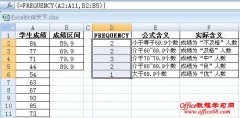 在Excel中,如果需要 统计数值的在指定区间内出现频率 ,可以使用FREQUENCY函数统计数值的在指定区间内出现频率。Excel2007可使用FREQUENCY函数统计数值的在指定区间内出现频率。 如上图所示,选中D2:D6单元格区域,在编辑栏输入公式: =FREQUENCY(A2:A11,B2:B5) 按Ctrl+Shift+回车组合键输入数组公式即可统计数值的在指定...