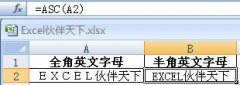 Excel使用ASC函数将全角英文字母更改为半角英文字母