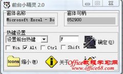 有时我们需要让Excel窗口总是显示在最前面而不被别的窗口挡住,虽然Excel并没有提供这样的功能,但可以用下面的方法: 方法一:使用软件 能够实现让窗口总在最前面的软件非常多,例如前台小精灵2.0就是这样一款绿色的免费小软件,它能让任意窗口始终在最前面,可以到华军软件园的相关页面下载(单击 这里 打开下载页面)。...