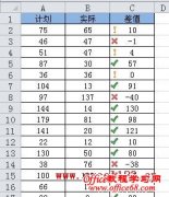 在Excel 2007/2010中设置图标集条件格式时,通常是同时对区域中的全部单元格进行设置的。但有时也有例外,如下图中C2:C1000区域中的各单元格的值为同行A列与B列的差值,需要在C列中设置图标集: 要求如下图: 在这种情况下,由于C列单元格中的图标集仅仅与其他列中的单元格值有关,而与本列中的其他单元格无关,因而无法直...