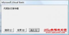 如果Excel中的某个宏命令运行时间过长,需要调试或停止其运行,可以按ESC键或Ctrl+Break键,Break键与Pause键是同一个键,通常在Printer Screen键和Scroll Lock键的右侧。Excel会停止宏的运行,并且显示一个对话框: 单击继续按钮将继续运行宏命令,单击结束按钮停止执行,单击调试按钮将在VBA编辑器中高亮显示停止前正在...