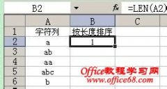 Excel按单元格内容(按字符)长度排序的方法技巧