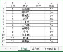 当前Excel表格里面有多张工作表,分别是各个部门的员工信息表。学历一列,不需要每个人手动录入。我们可以使用excel数据有效性(数据验证)来做。 操作步骤如下: 第一步,选择A2:A7单元格区域,新建名称框里面输入名称,比如:学历列表。(思考:为什么要将A7空白单元格也包含进去) 第二步,返回到市场部工作表,选择C2...
