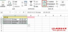 平时工作有时候在某个单元格既输入了中文,又输入了英文,甚至还有时间日期等内容,不进行处理的话,看起来会显得杂乱无章。如果将1列组合型数据分放到几列中进行保存,可以用分列功能来实现。下面小编教你具体怎么做吧。 Excel2013中单元格内容进行分列的步骤: ①启动Excel2013,打开我之前准备好的数据源,这是一组时间...