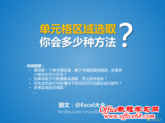 要选取一个单元格区域,除了常规的鼠标拖选,还有多少其他的可行方法? 如果有数万行数据要去选取,怎么操作最快? 在包含隐藏行列的情况下如何仅对可见部分进行操作? 多表区域如何选取? 方法1 Ctrl键 (多重选取) 按住Ctrl键然后用鼠标拖选区域,可以同时选中多个非连...