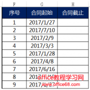 本文的Excel到期提醒功能,用到了条件和函数公式来做到期提醒变色提示 EXCEL到期提醒变色功能案例:计算合同截止日期 下面所示的序号,分别代表9份合同,每份合同的期限都是8个月,有起始日期,需要计算合同截止日期。 合同截止日期计算,需要使用到EDATE函数。H2单元格输入公式:=EDATE(G2,8) edate函数的语法:EDATE(起...